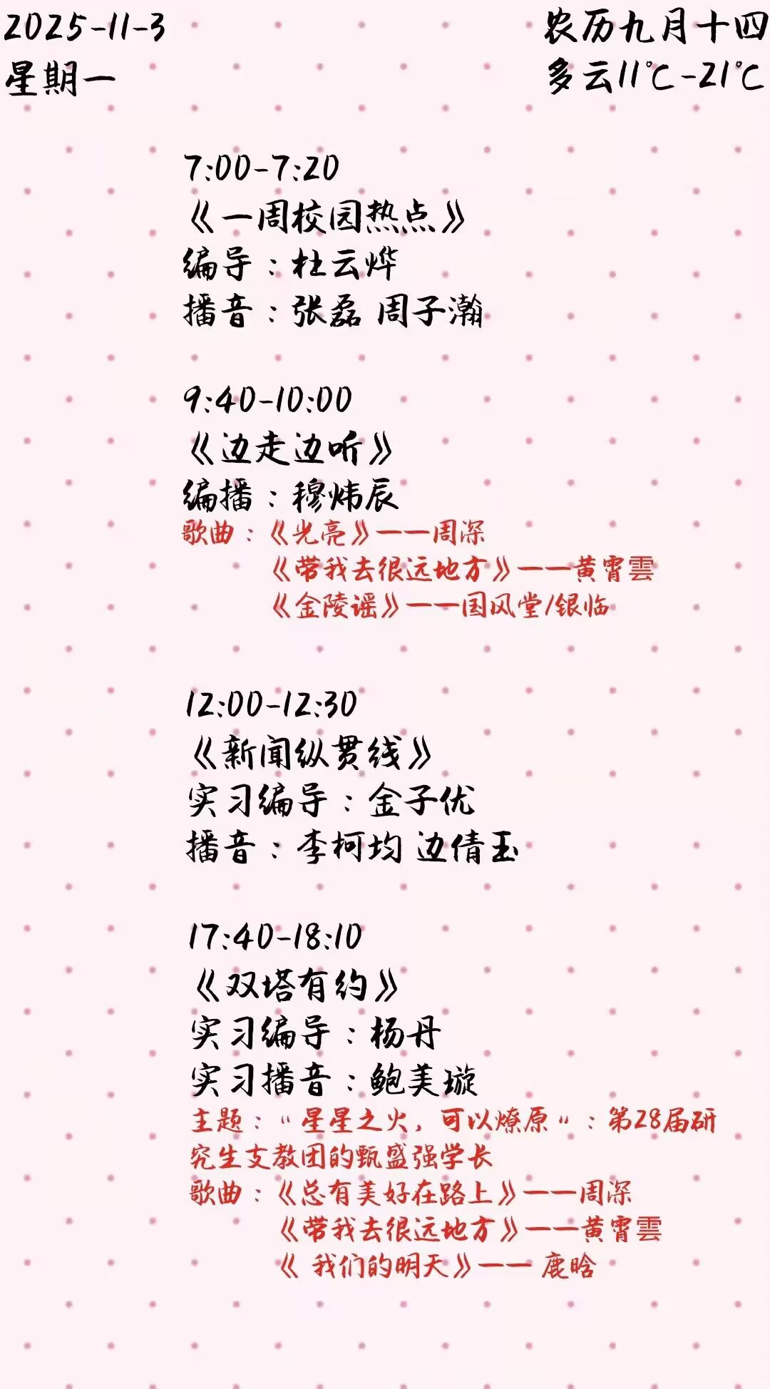 上一篇: 双塔之声2025年第二学期第10周节目单(2025.11.10-11.15)