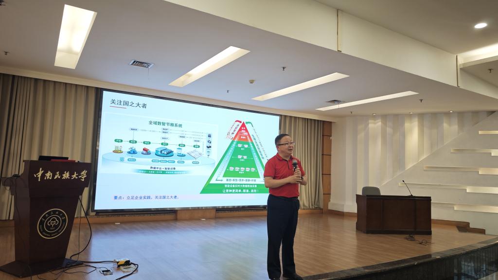 讲座中,高远飞以《回首离校30年——人生几点感悟》为题,结合自身在广西扬翔集团30年的职业生涯,为师生带来兼具实践深度与思想价值的分享。他提及亲历中国农牧业两次变革:20世纪90年代末推动企业聚焦猪料、建“产品+技术+服务”模式,助力其成广西饲料业龙头;2009年起参与企业联合高校创新养猪技术、推数智化方案,推动企业多业务居行业前列。针对学生关切的“专业对口”“职业起步”,他结合自身档案学出身、从零入农牧业的经历,强调学习、思考、动手能力是职场核心竞争力,鼓励学生打破专业局限、从基层做起,在解决行业问题中实现个人与企业价值双赢,还分享企业用数智技术节粮助国家粮食安全的实践,传递“立足实践、关注国之大者”的理念。在互动环节中,高远飞耐心解答了学生关于农牧行业就业前景、跨专业求职准备等问题,以“大部分人能专注做好一件事就很了不起”的真诚建议,引导学生聚焦目标、深耕领域,朴实而深刻的话语赢得了现场师生的阵阵掌声。