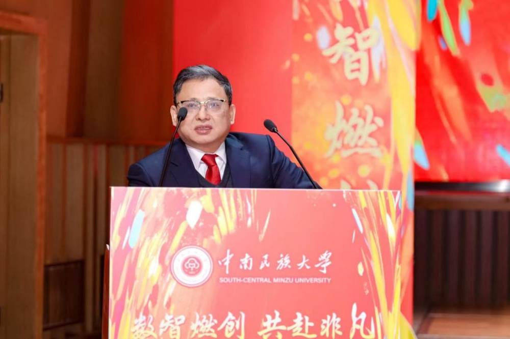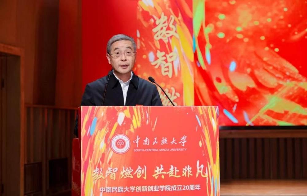李仁府教授作为嘉宾代表致辞,高度评价了我校双创学院20年年的建设成就。他表示,在人工智能、空天科技等新兴领域快速发展的背景下,中南民大率先探索“AI+创业”教育模式,走在了全国高校前列;期待未来两校在智能无人系统、空天信息等前沿领域深化合作,共同培育兼具家国情怀与卓越能力的“强国一代”。