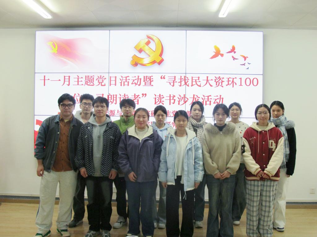 为增强学生思想政治引领,促进青年学子全面成长,2025年11月27日,资源与环境学院研究生党支部举办十一月主题党日活动暨“寻找民大100位心灵朗读者”读书沙龙活动。活动将理论教育与心理成长有机融合,通过党课学习与读书分享相结合的方式,吸引了各年级学生积极参与。